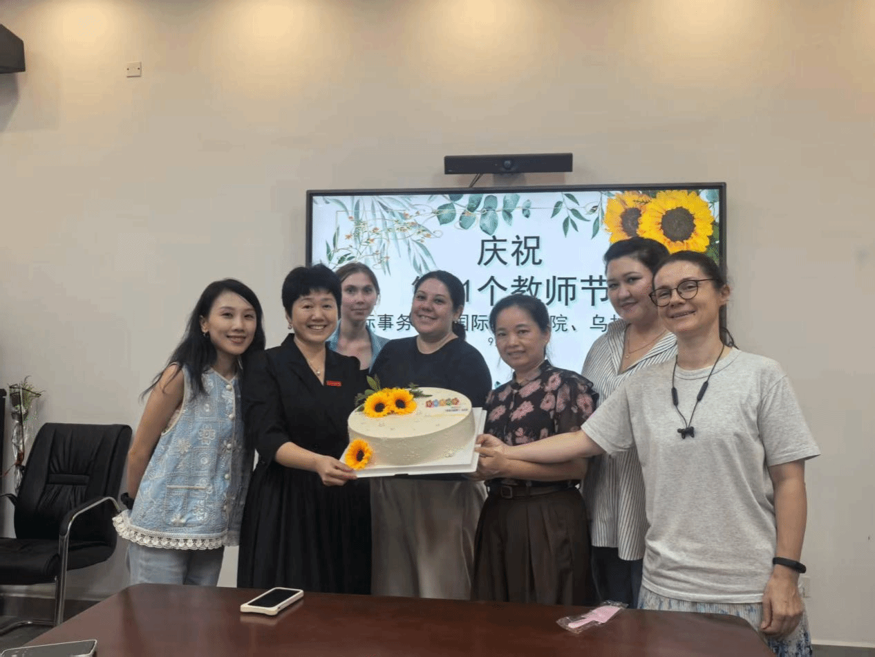 秋高气爽,丹桂飘香。2025年9月10日国际事务部、国际教育学院、乌拉尔学院在国际教育中心第二会议室举行了温馨简朴的教师节庆祝活动。国际教育学院、乌拉尔学院周丽霞院长与中外教师们一起欢度节日。